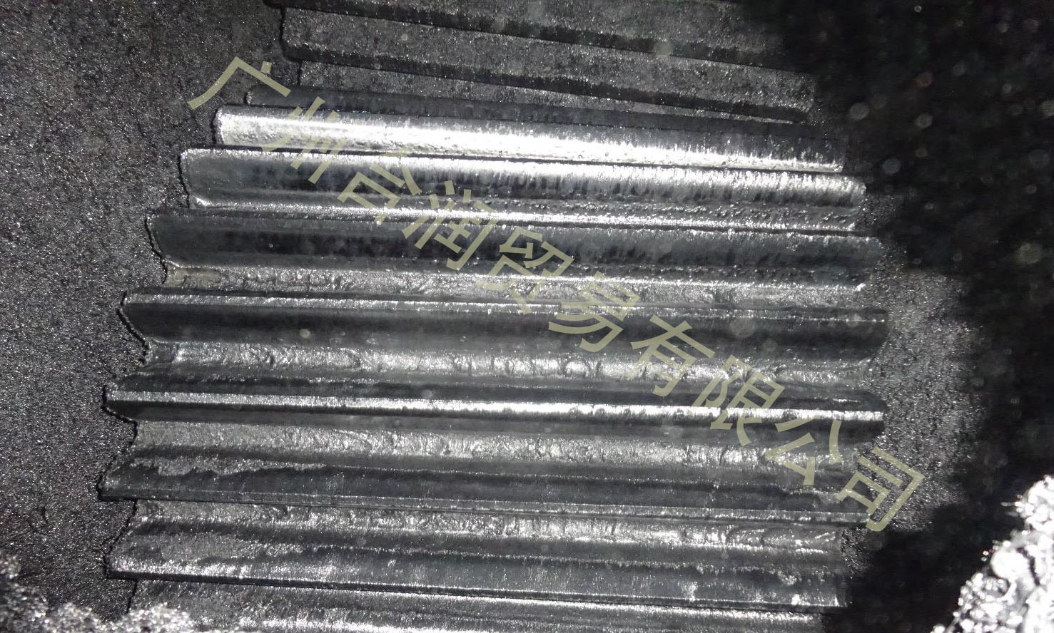 打開磨機的觀察口在頻閃儀下觀察大小齒輪工作齒面情況,大小齒輪工作面已被油膜覆蓋,大小齒輪的工作齒面沒發現有磨損現象和磨損痕跡,油位有些偏低,需要添加些潤滑油使油面沒過小齒輪的四個齒為益,這樣能讓油膜形成得更厚粘附性更好會使潤滑油發揮到最佳潤滑效果,對大小齒輪起到更好的保護。