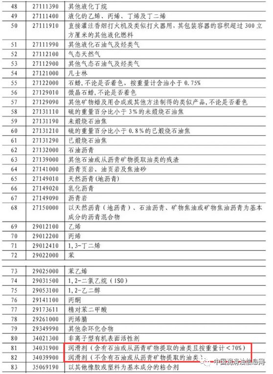 根據商務部2018年第55號公告和《國務院關稅稅則委員會關于對原產于美國約160億美元進口商品加征關稅的公告》(稅委會公告〔2018〕7號),現公布經調整的對美國輸華商品加征關稅商品清單二,自2018年8月23日12時01分起實施加征25%關稅。根據公告清單,中國將對石油、鋼鐵和汽車等160億美元美國輸華商品加征25%關稅,其中包括潤滑油、基礎油。